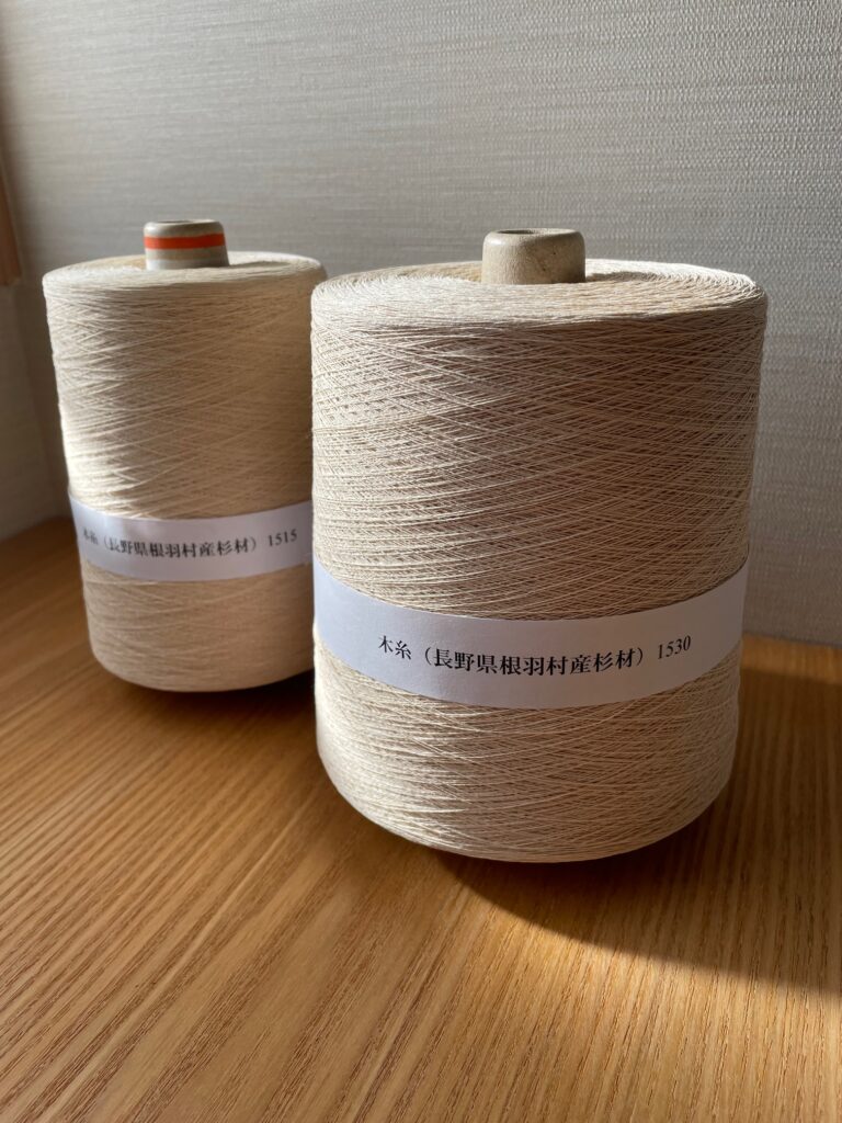 木の糸は、スギやヒノキなどの国産材からセルロースを抽出し、和紙化・細断・撚糸の工程を経て生まれる天然繊維です。石油由来の合成繊維とは異なり、生分解性を有し、マイクロプラスチック問題の軽減にもつながる素材として期待されています。